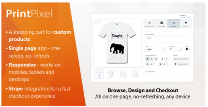 A responsive, user friendly, all-in-one shopping cart for designing, printing and selling custom T-shirts or other products. PrintPixel is a