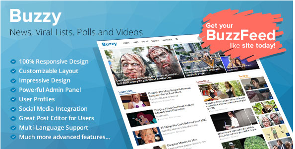 Breaking News, Viral Lists, Awesome Polls and Popular Videos. Buzzy brings all of these contents into one system. Create beautiful viral websites like BuzzFeed with Buzzy! You have advanced tools to do that. With Great Post Editor, Powerful Admin Panel and Impressive Design. You will thin